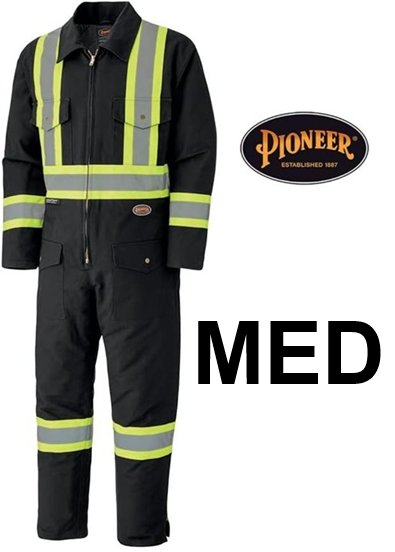 ADULT UNISEX Pioneer Quilted Cotton Duck Canvas, Heavy-Duty, High Visibility, Insulated Work Coverall, Hip-to-Ankle Zipper - Medium - BLACK (STYLE: 5539BKA)