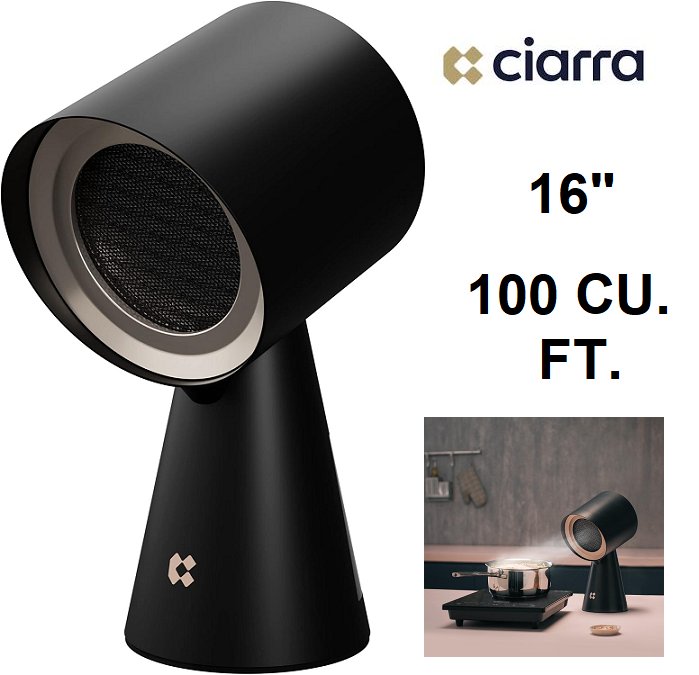 CIARRA Desktop Range Hood, Mini Cooker Hood with 2 Speed Exhaust Fan - 100 CUBIC FEET PER MINUTE - 16" - BLACK (MODEL: CBPHBO10)