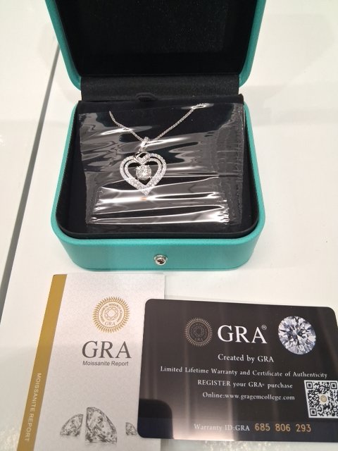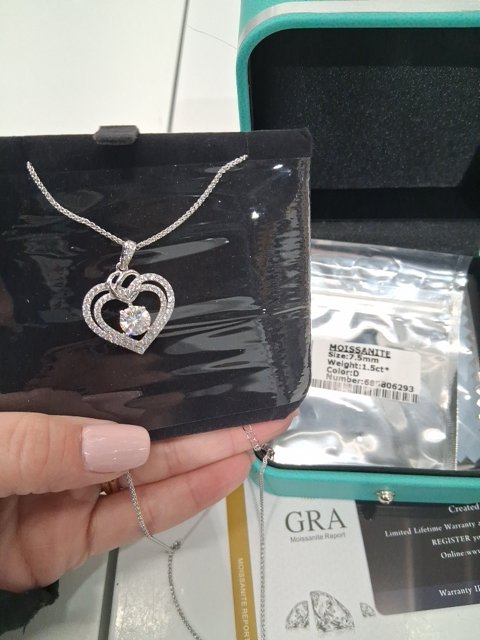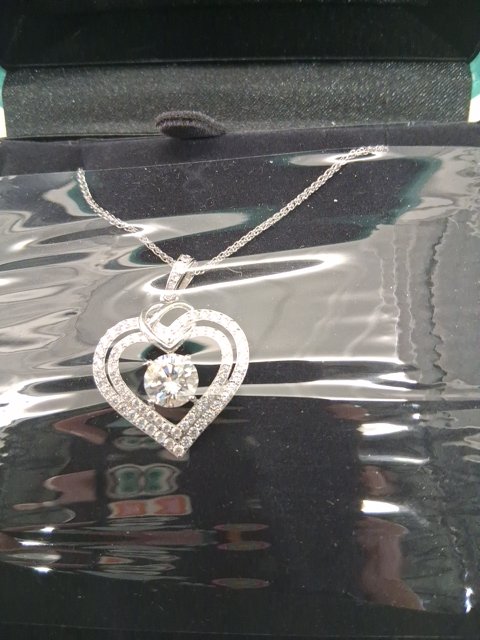 women's OOBEE moissanite Heart Necklace 17.5" - 19.5" - Silver-Round-1.5 carat - Sterling Silver