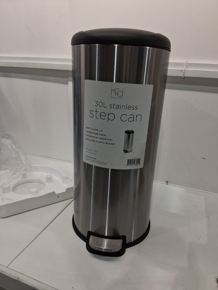 Honey-Can-Do Soft-Close Round Stainless Steel Trash Can with step- 30L - Silver (model:TRS-08994)