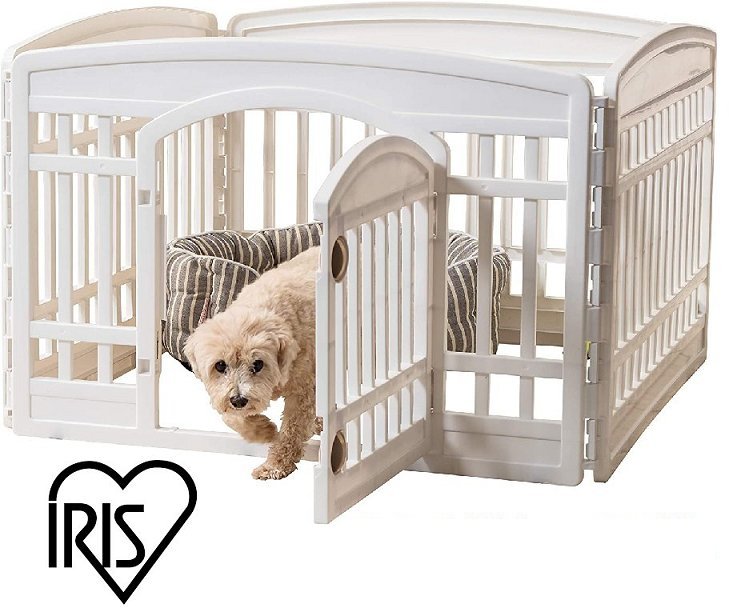 IRIS USA 4-PANEL PET PLAY PEN WITH GATE - 35.25" x 35.25" x 24" - WHITE - (MODEL: CI-604E)