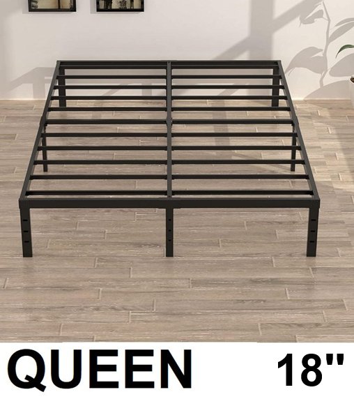 Upcanso Bed Frame No Box Spring Required Metal Platform - 18'' - queen - black (model: T40-1804)