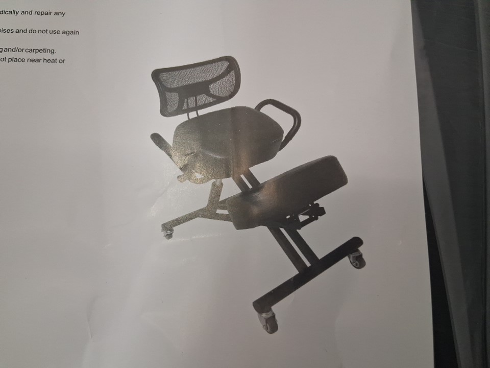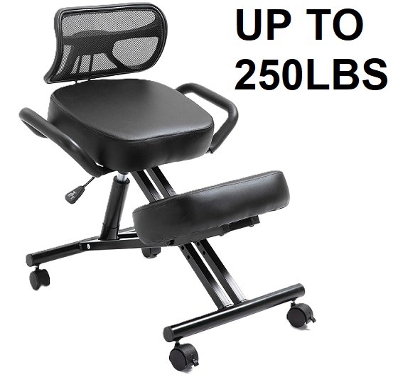 Ergonomic kneeling chair with back support, height adjustment and wheels - up to 250lbs - Black