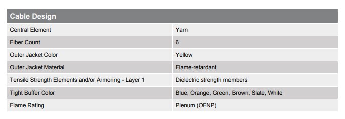 CORNING MIC Tight-Buffered PLENUM Cable - 1000FT - YELLOW