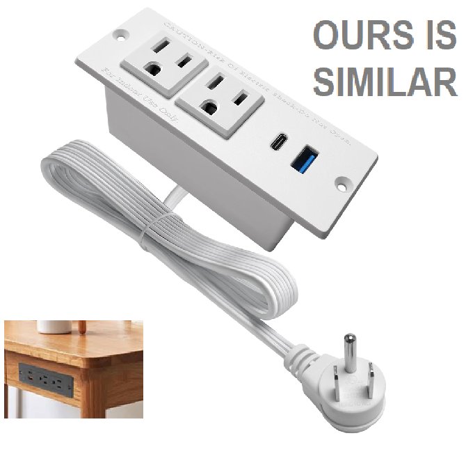 Recessed Fast Charge Desktop Power Station with 2 Outlets 1 USB and 1 usb-c outlet - white