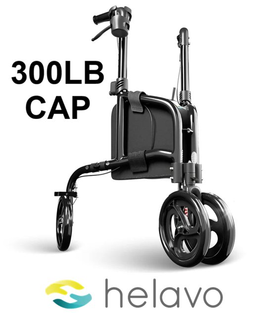 HELAVO NARROW 3-WHEEL ROLLATOR WALKER - 300LB CAPACITY - BLACK (MODEL: H1080)