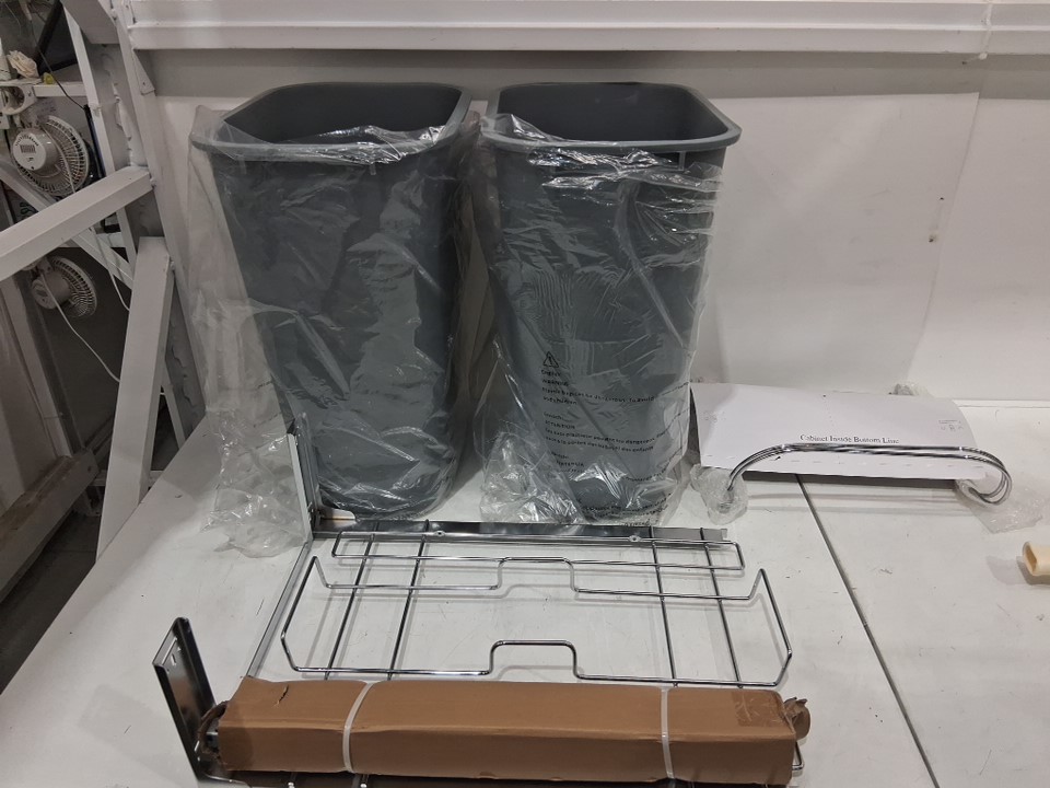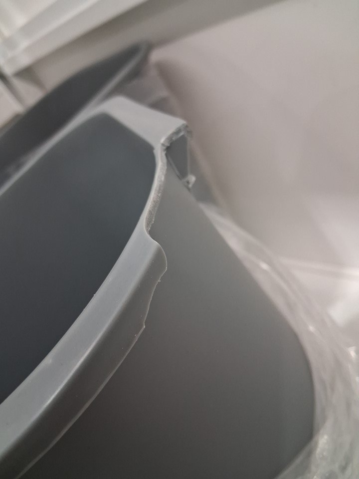 the one garbage bin has a piece missing . refer to picture.