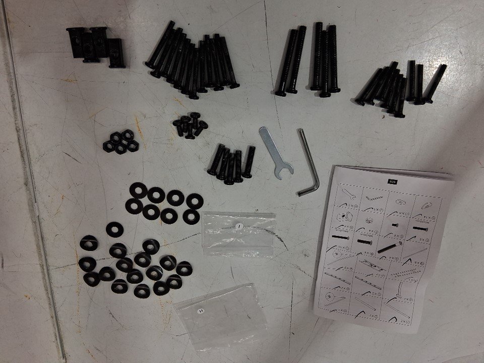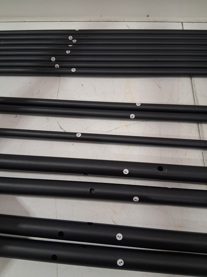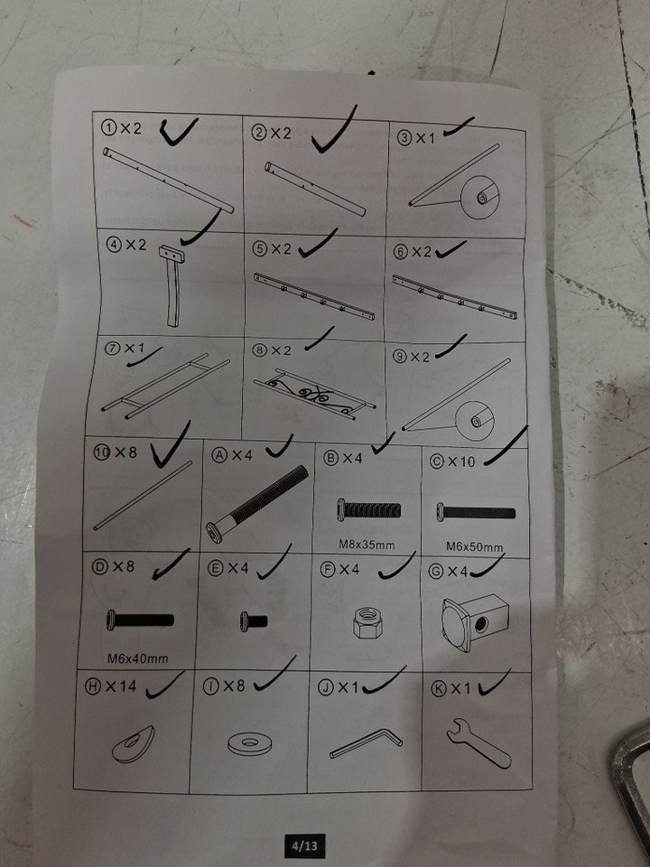 all parts accounted for. Some unknown residue on the ends of most of the poles. See photos.