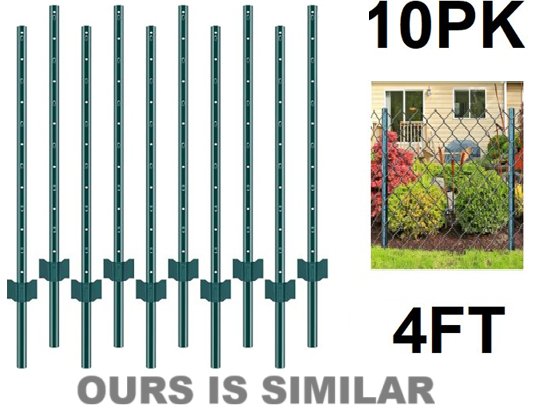 10PK U-Channel heavy duty stakes for wire Fence - 4FT - black