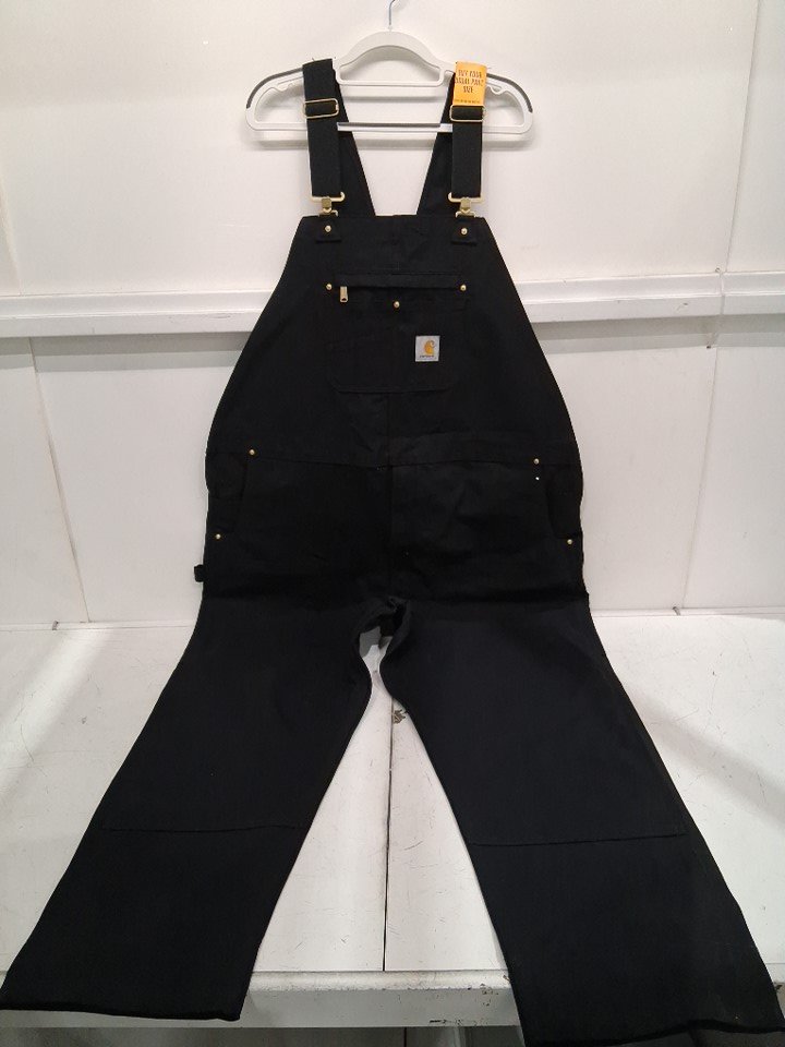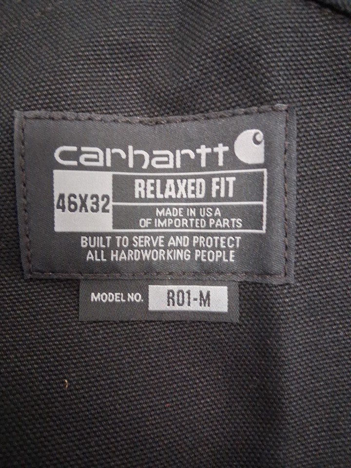 MENS CARHARTT RELAXED FIT DUCK BIB OVERALLS - 46W X 32L - BLACK (STYLE: R01-M)