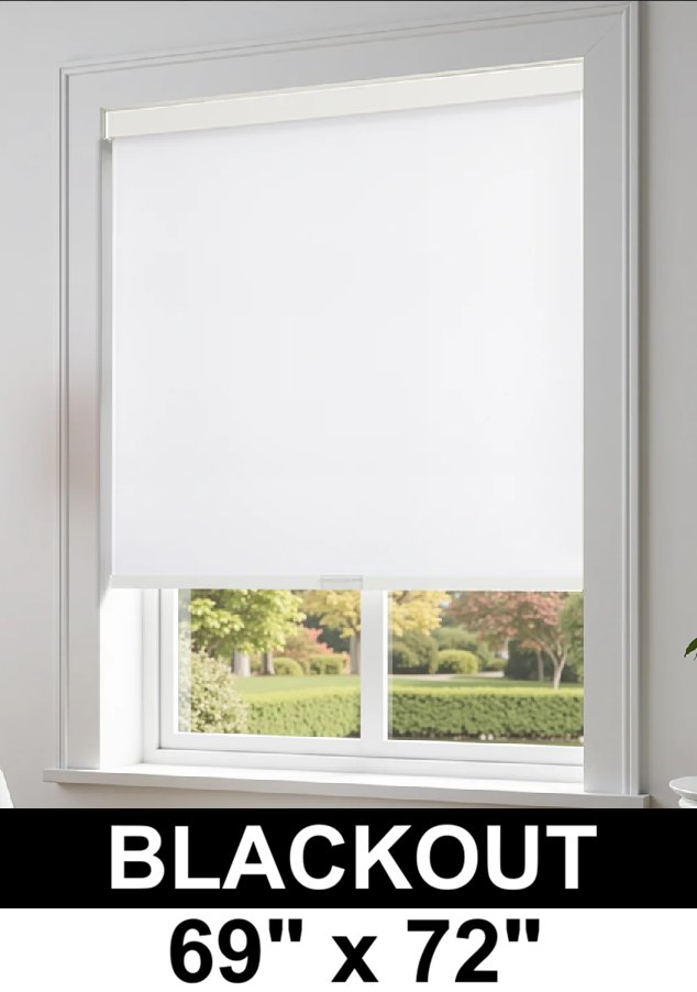 Aosky Cordless Roller Shades Blackout Blinds for Windows Room Darkening Rolled Up Shades UV Protection for Home and Office - 69" X 72" - White