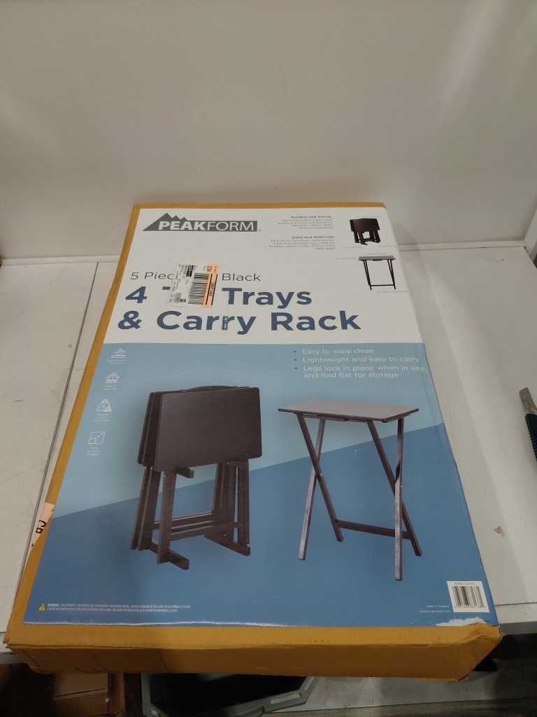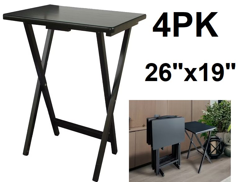 4pk peakform foldable tv trays with carrying rack - 26" x 19" x 14.5" - black