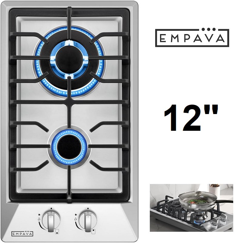 Empava Gas Stove Cooktop with 2 Italy Sabaf Sealed Burners - 12" - stainless steel