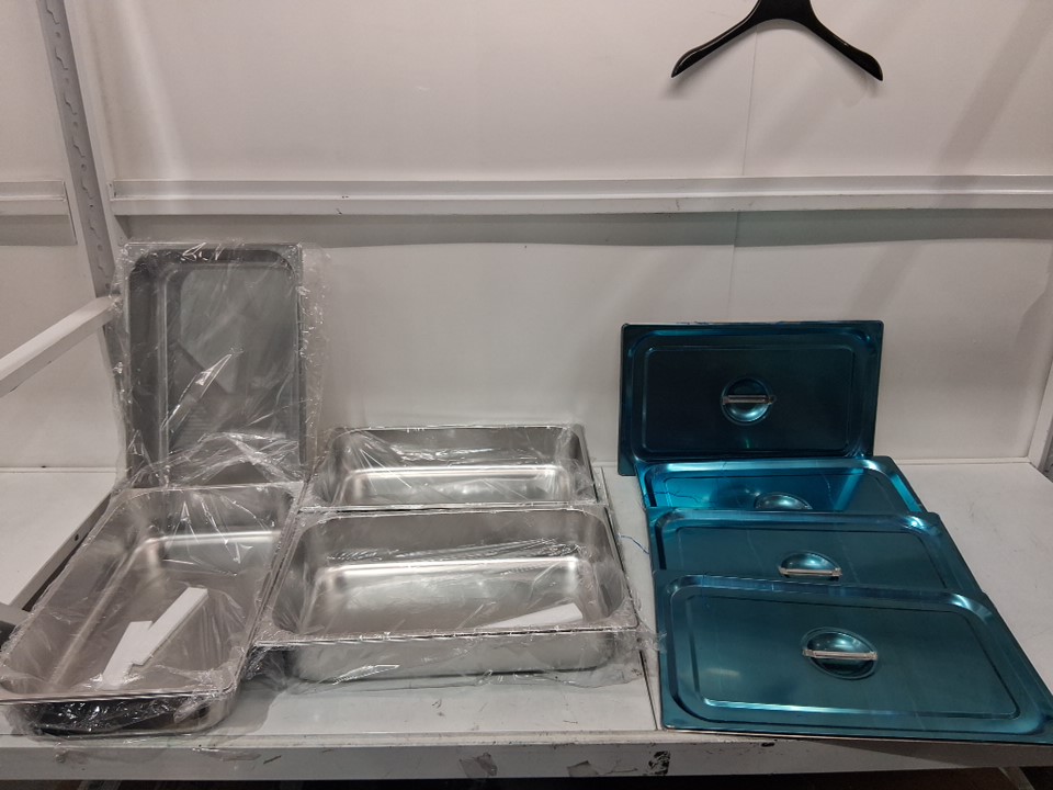 4PK Stainless Steel Hotel Food Tray Pans with Lids - 20" L x 12" W x 4" D - Silver (Model: HZ811-100TGNPAN/HZ811LID)