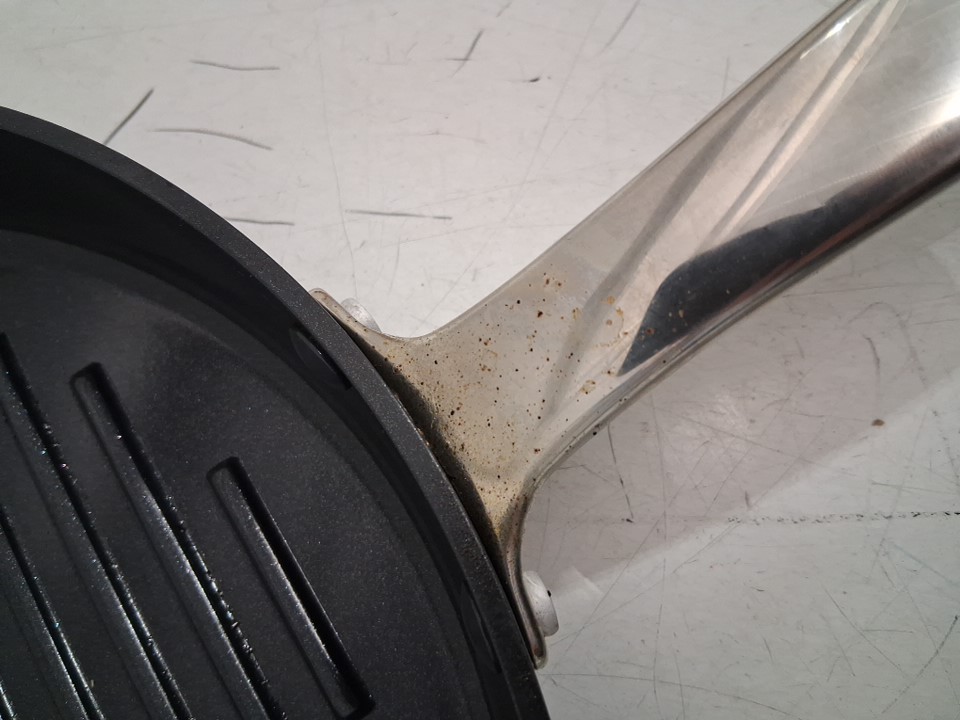 please note that the pan has a small amount of food splatter near the handle - see photos