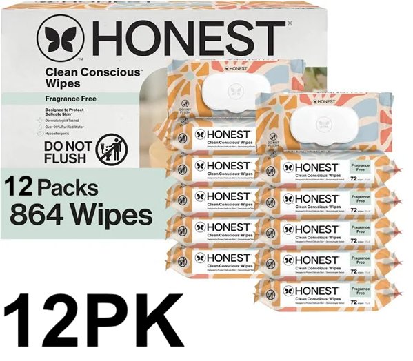 12PK The Honest Company clean conscious unscented baby wipes - 72 TOTAL (864 WIPES)