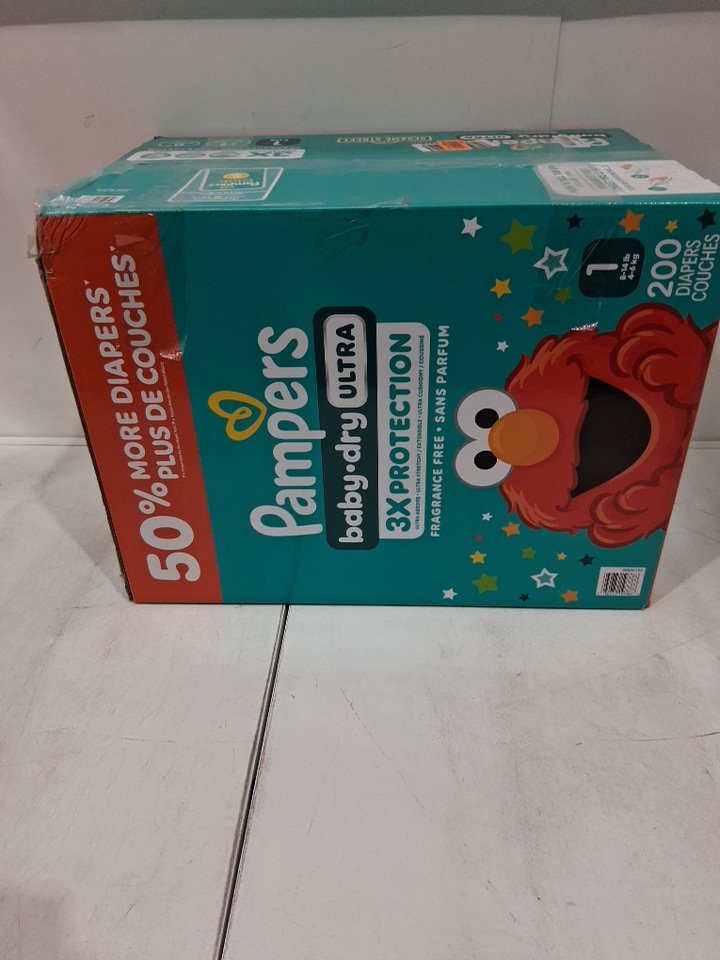 200PK Pampers baby dry ultra, Fragrance Free - Size 1 - Elmo