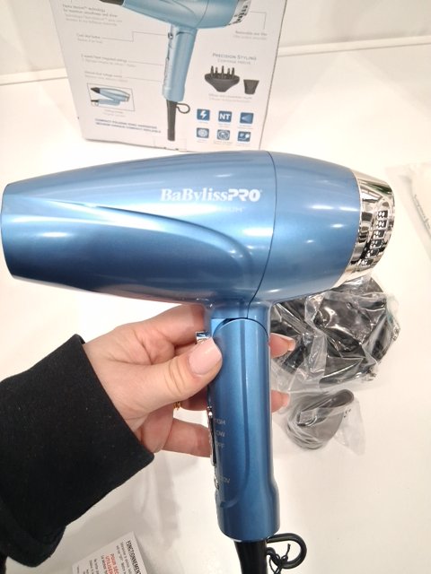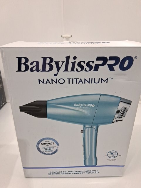 babylisspro nano titanium compact folding ionic hair dryer - 1200 watts - blue/silver (model: bnt910c)