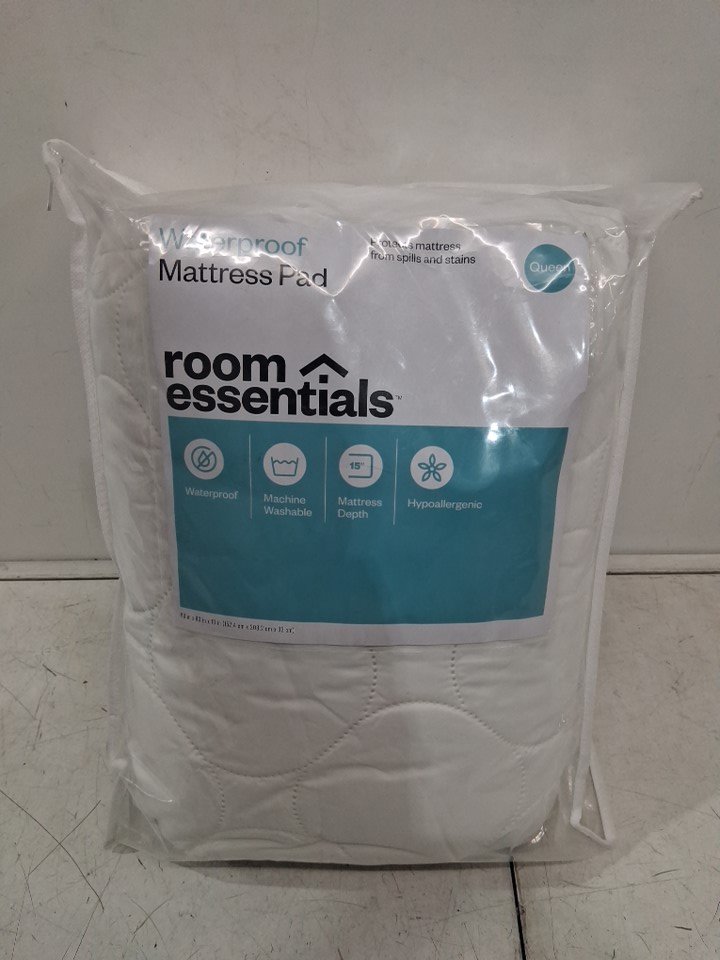 Room Essentials WASHABLE Mattress Pad for 15" mattresses - QUEEN (60" x 80" x 13") - WHITE (model: 062 06 0233)
