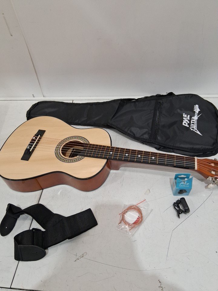 PYLE RIGHT-HANDED 1/4 SIZE CLASSICAL ACOUSTIC BEGINNER GUITAR WITH CARRYING BAG - 30" - natural gloss/wood (MODEL: PGAKT30)