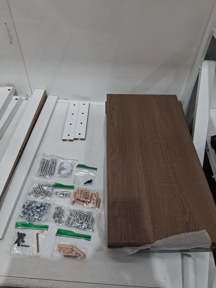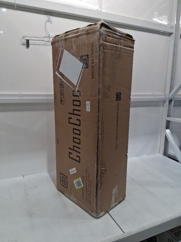 choo choo long console table for living room or entryway - 11.8" x 70.9" x 31.5" - white brown (model: ‎ST2405-1TWL)