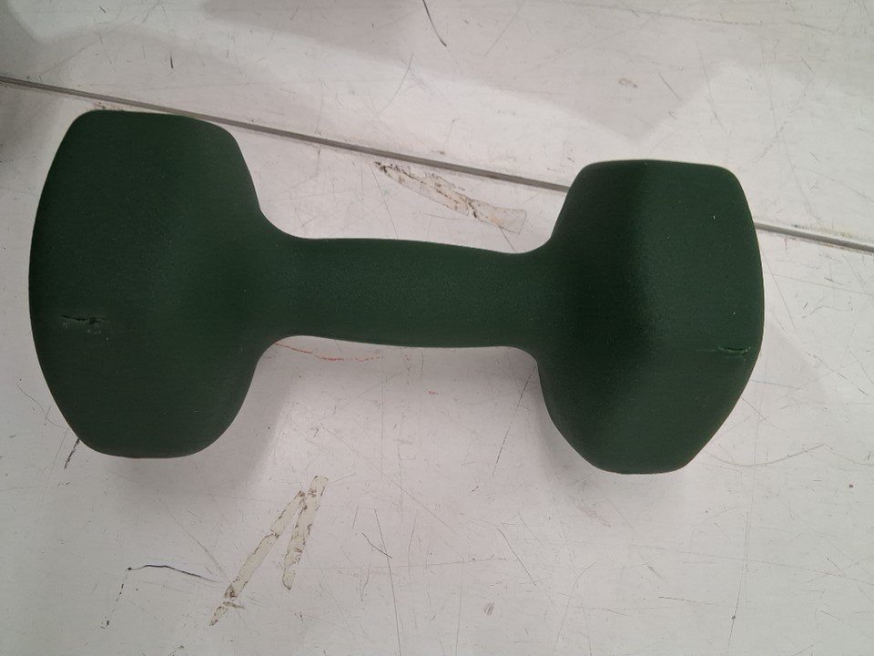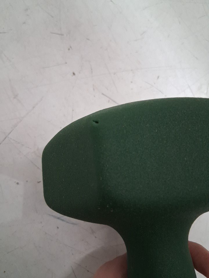 There are two indents/tears on one of the weights, and the other wait has a tiny indent/tear as well. (See Photos)
