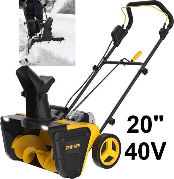 ZEGJAW Cordless Snow Blower with Brushless Motor, Dual LED Light - 40V 20-Inch - yellow/black (model: speg09)