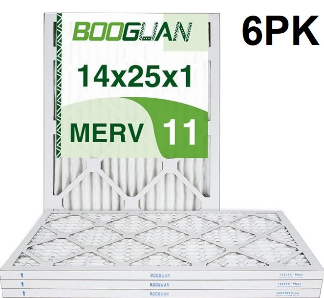 6PK BOOGUAN MERV11 Pleated AC Furnace Air Filter - 14" x 25" x 1" - white