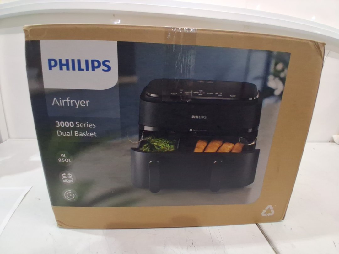 philips 3000 series dual basket air fryer- 9L total, 3L & 6L baskets, 1800W- black/silver (model: NA350/00)