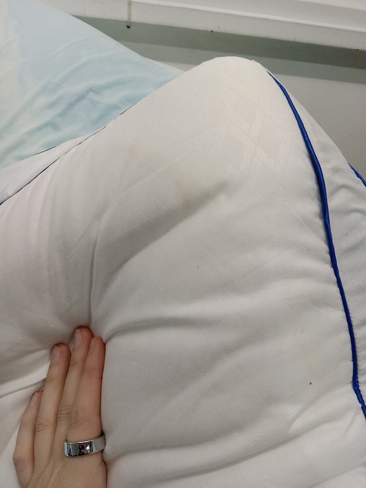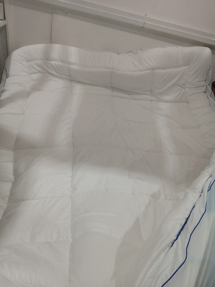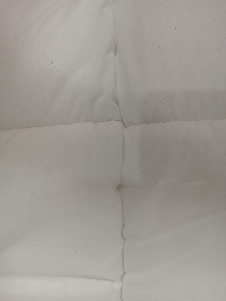 Stain in the corner and hair on it form previous use, can likely be washed as it is on the quilted topper.
