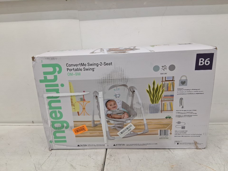 INGENUITY CONVERTME SWING-2-SEAT corded PORTABLE SWING - OM to 9M - RAYLAN FASHION / grey (MODEL: 12189-es)