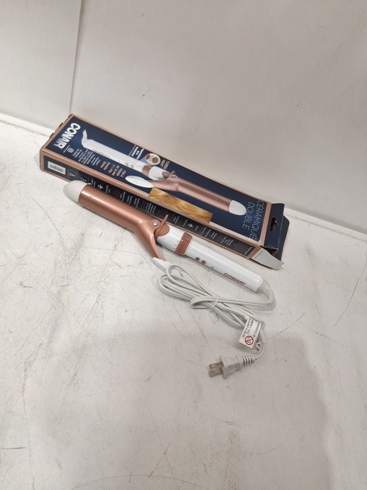 CONAIR DOUBLE CERAMIC CURLING IRON - 1 1/4" BARREL - WHITE/ROSE GOLD (MODEL: CD702GNRC)