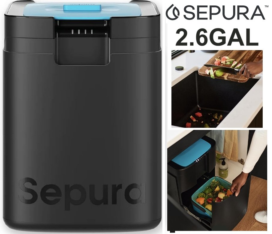 sepura home septic-safe anti-jam continuous feed composting garbage disposal bin - 2.6gal - black/blue (model: 06334866)