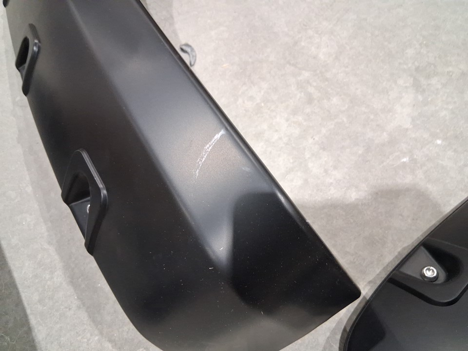 Some fenders missing rubber cover at the bottom. Signs of use due to scuffs and marks present.