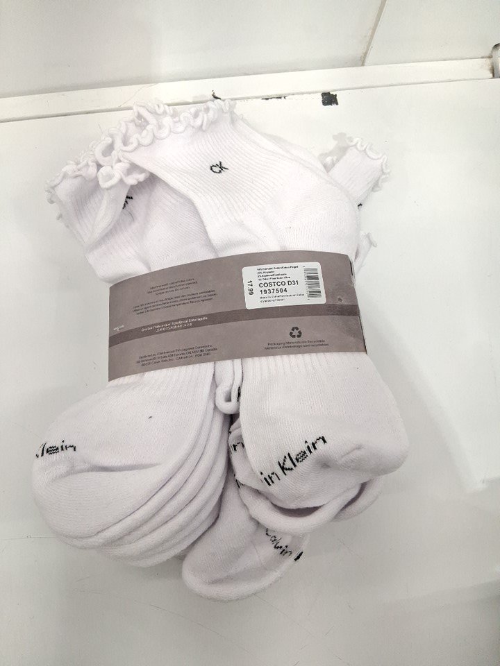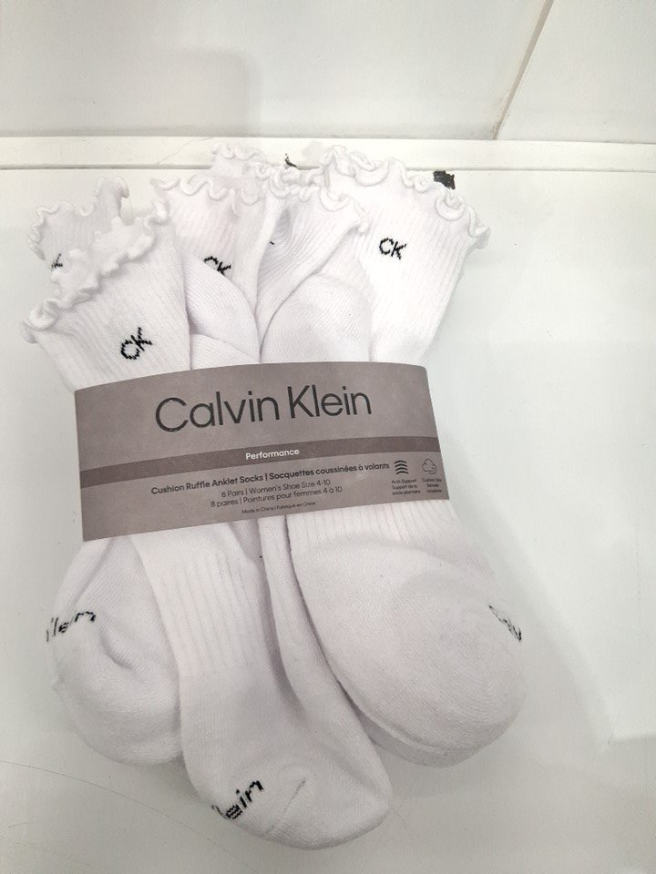 8PR WOMENS CALVIN KLEIN CUSHION RUFFLE ANKLE SOCKS - 4-10 - WHITE -(STYLE:1937504)