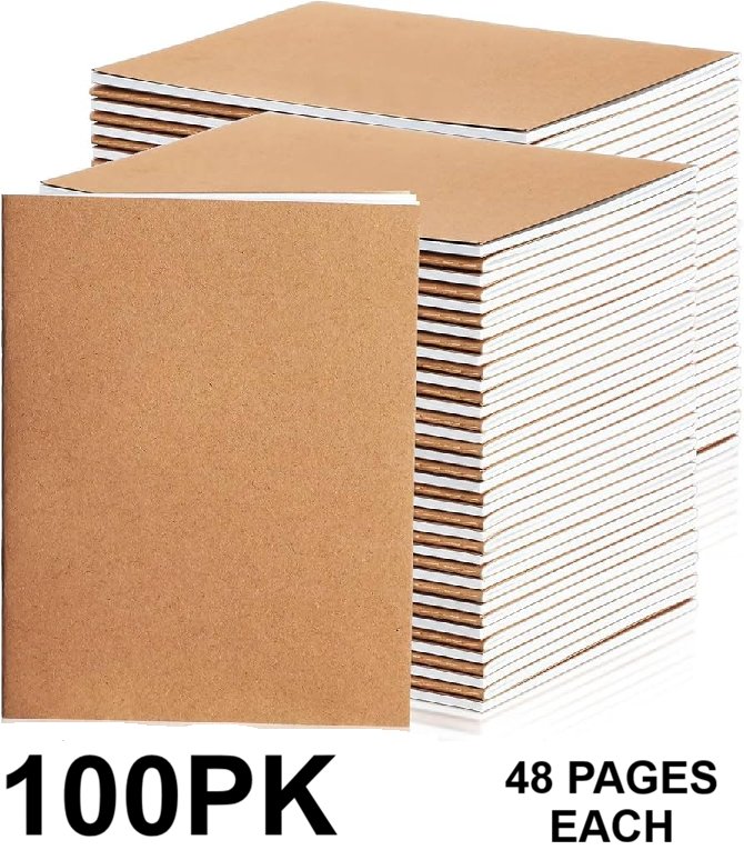 100pk Kraft Paper Blank Page Notebooks - 48 Pages Each (Model: 1163)