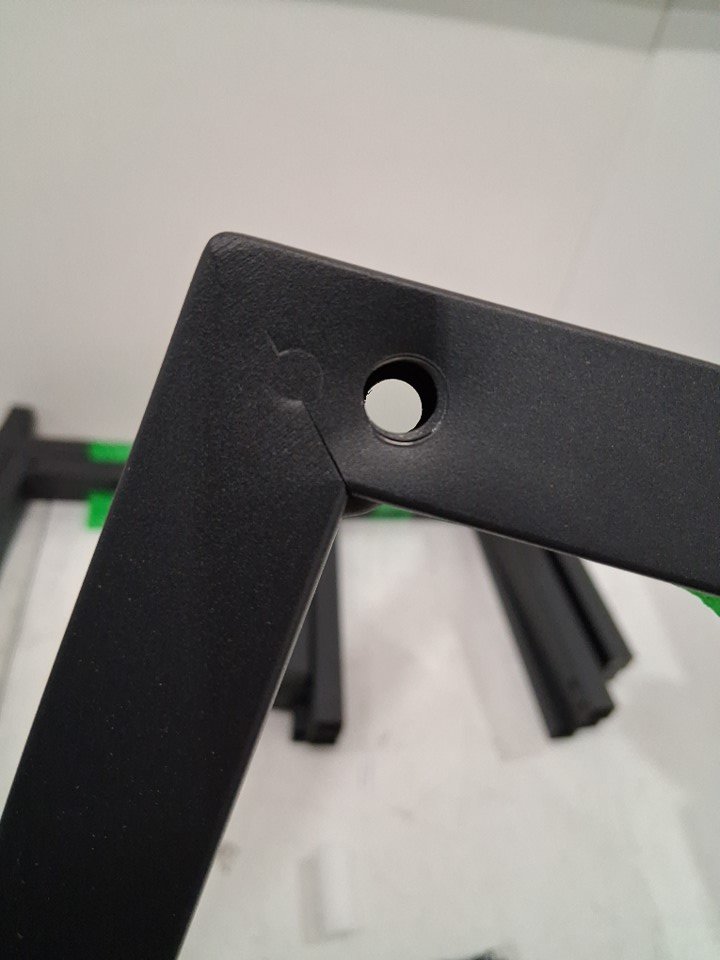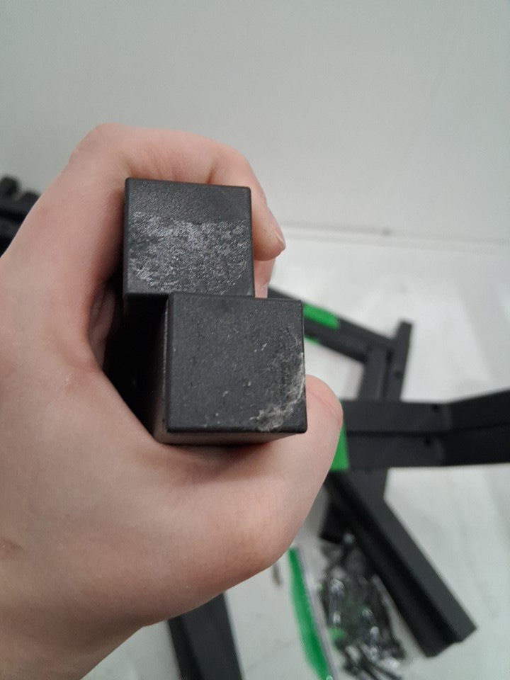 Product has some residue on bottom of feet and has some marks around instillation holes indicating previous assembly Please note there is no manual and we are unable to determine exact measurements