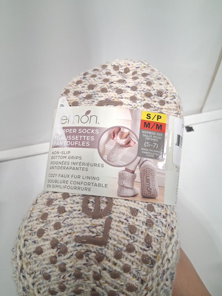 Women's Lemon KNIT GRIP SOCK SLIPPERS - SMALL / MEDIUM - OFFWHITE/MULTICOLORED - (STYLE:1932769)
