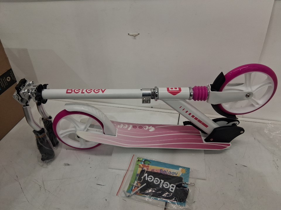 beleev v5 Foldable Quick-Release two wheel scooter - 220lbs max - white/pink (model: BE030)
