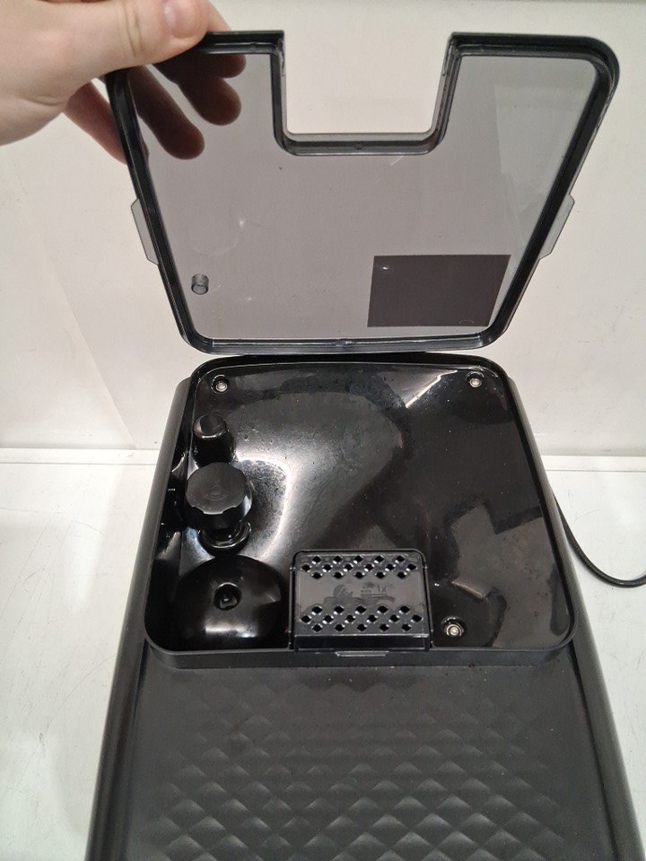 Item shows previous signs of use such as scuffs/scratches on surface and mild coffee debris in unit. Item tested for power.