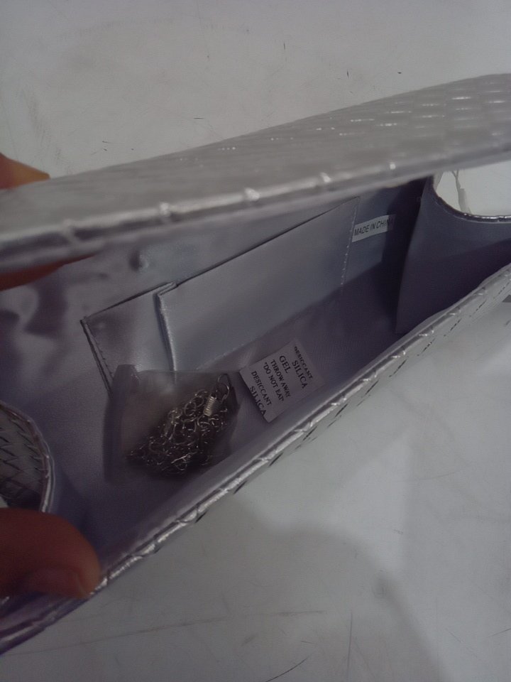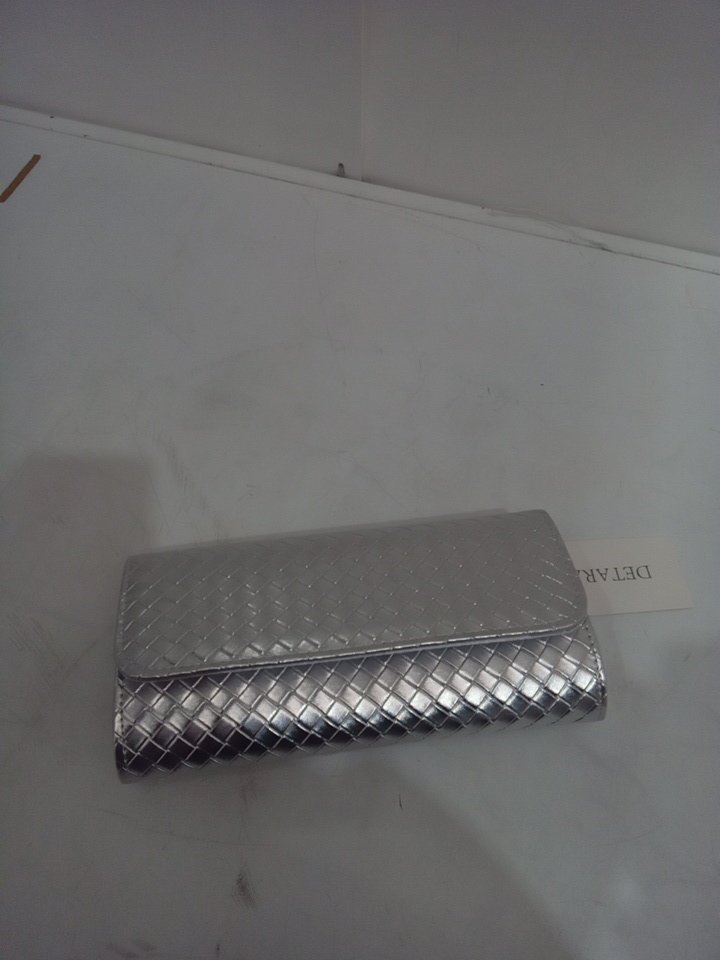 women's DETARA PU Leather Woven Evening Clutch Crossbody Purse - 4" x 9.5" - silver