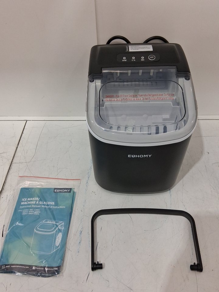 EUHOMY Countertop Ice Maker Machine with Handle, Basket and Scoop - MAKES 26LBS Per Day - BLACK (MODEL: IM-06D)