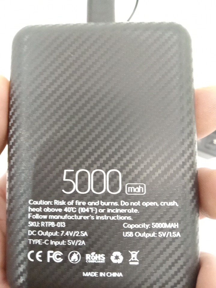 caforu rechargeable battery for heated vests, jackets and hoodies - 5000mah - 7.4v - black (model: RTPB-013)
