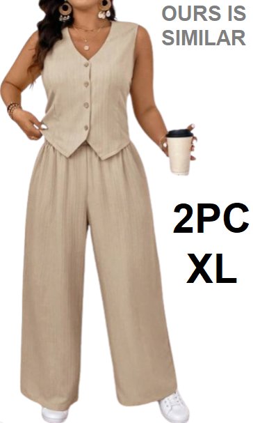 2pc women's shein curve california design sleeveless vest & pant set - extra large - khaki