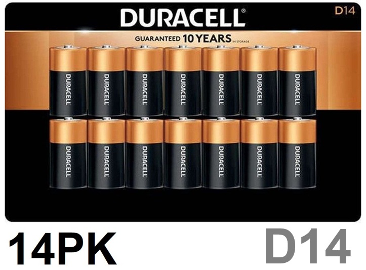 14PK Duracell Coppertop Alkaline D14 Batteries - 1.5V - (Model: MN13TB14)