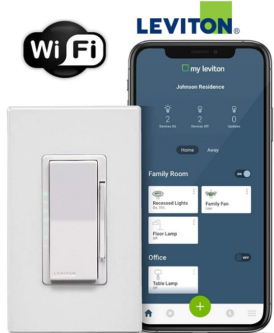 LEVITON DECORA SMART 1000W DIMMER WITH WIFI TECHNOLOGY -WHITE/LIGHT ALMOND(MODEL: DW15S))