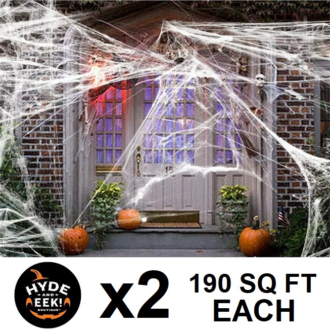 2 Hyde and Eek! Indoor / Outdoor Stretch Spiderwebs - 190 square feet each - white
