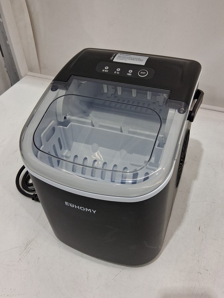 EUHOMY Countertop Ice Maker Machine with Handle, Basket and Scoop - MAKES 26LBS Per Day - BLACK (MODEL: IM-06D)