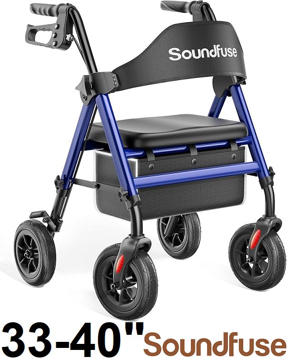 Soundfuse Rollator Walkers for Seniors with Seat - 33-40" - blue/black - (model: ur140)