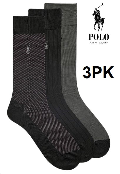 3pk Men's Polo Ralph Lauren Classic Patterns Crew Socks - grey\black\purple